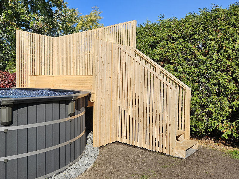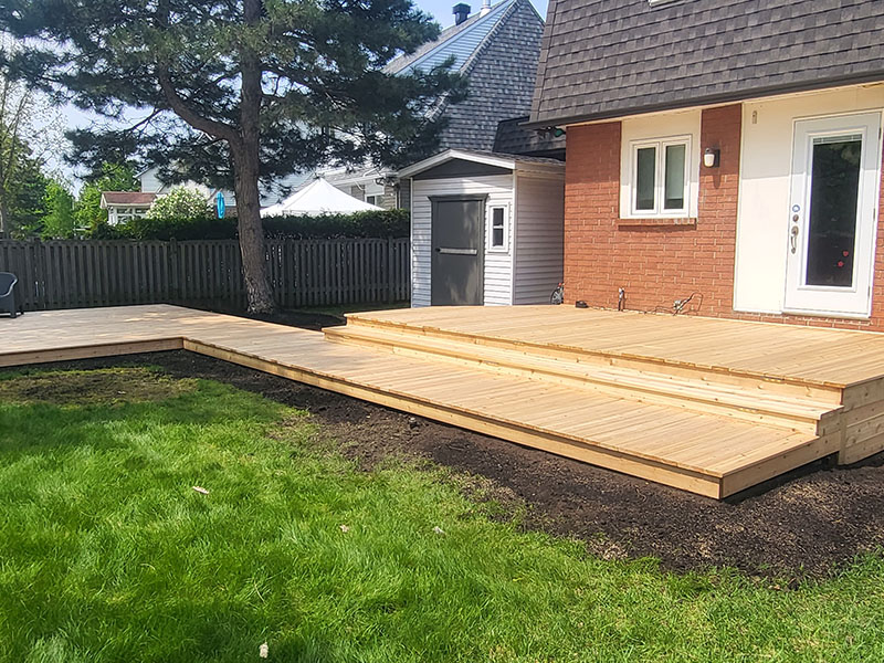 Suite à la récolte de vos réponses, nous vous proposerons le plan de votre future terrasse. Concernant les matériaux utilisés, nous travaillons avec du bois traité, du cèdre et du bois de composite. Nous effectuons tous les travaux de menuiserie nécessaires à sa fabrication. Nous pouvons aussi concevoir des terrasses en pierres naturelles ainsi que l'aménagement paysager de votre espace (fleurs et arbustes). Tous les projets que nous proposons sont clés en main. Avec notre équipe d'experts, vous n'aurez aucun souci à avoir.