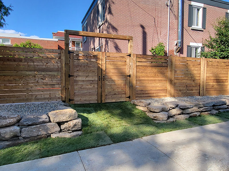 Chez Perfection Paysage, nous vous proposons notre expertise dans la conception et l'installation de clôture de bois. Nos panneaux de clôture sont réalisés à partir de bois traité ou de cèdre. Nous travaillons aussi avec du bois composite nécessitant par la suite que très peu d'entretien.
